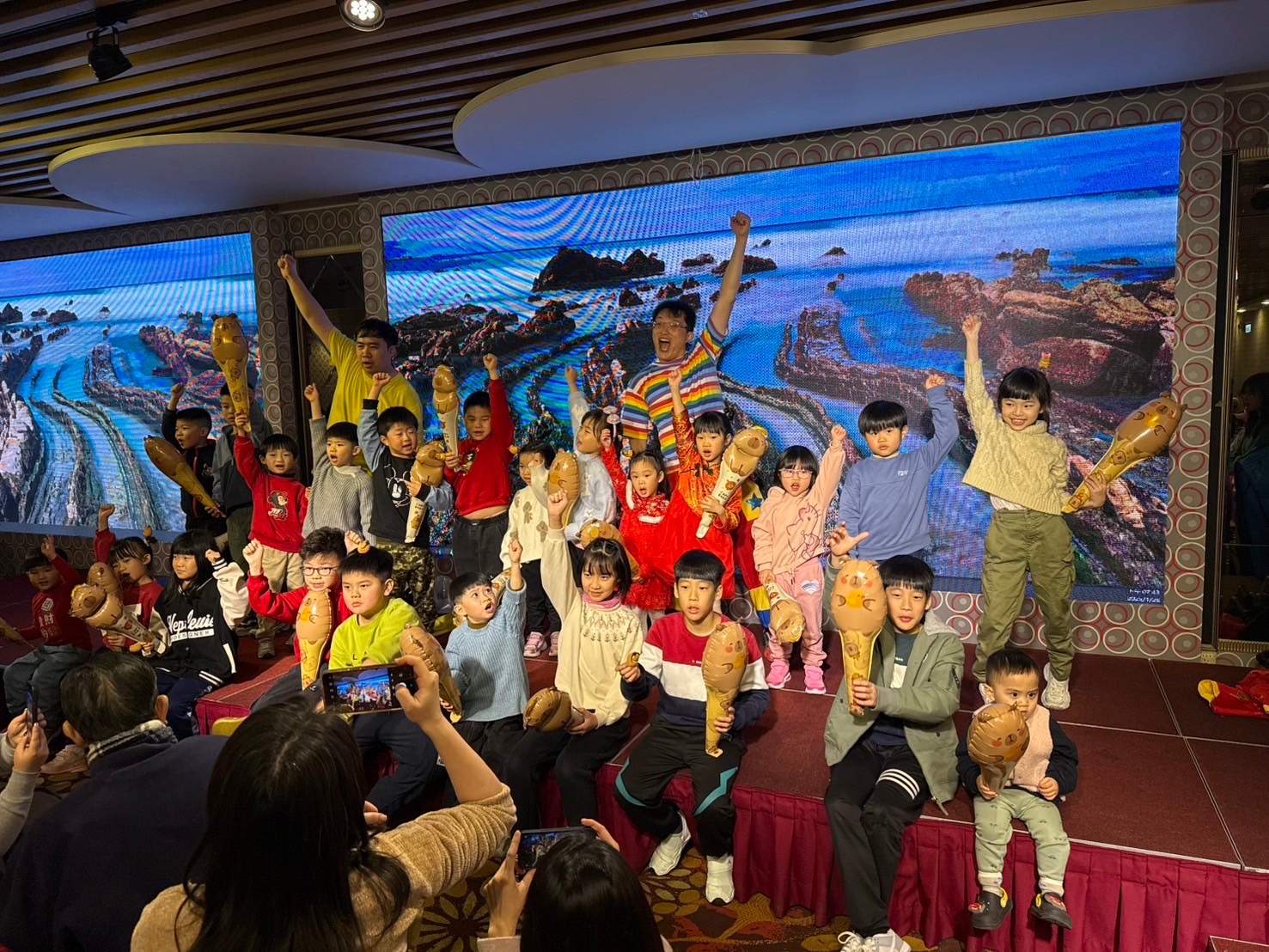 ✔ 兒童互動節目:小朋友們站上舞台,拿起趣味道具,與主持人一起合唱互動,台下的家長紛紛拿起手機記錄這一刻。